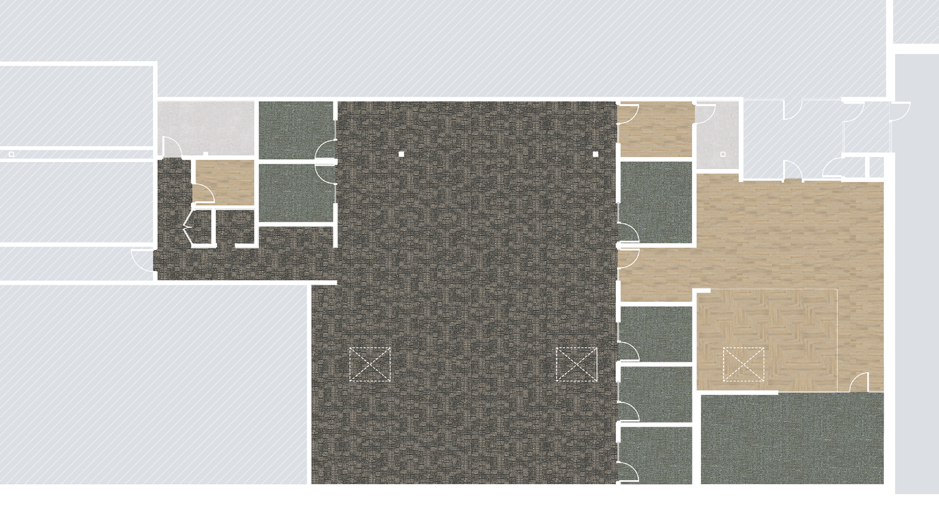 While this project operated within a conservative budget, we made it a priority to not let that hinder the design and viewed this as a catalyst for creativity. We worked with our sales reps to specify high impact finishes that offered the look of luxury without the premium cost. Wood look LVT with different installation patterns and geometric carpet tile throughout the office spaces add a fun level of creativity without sacrificing budget. Simple and appreciated by the client!
